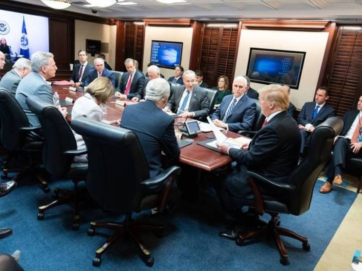 PHOTO: President Trump and leaders of the House and Senate meeting in the White House Situation Room on Jan. 2 via the Office of the President.