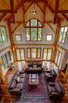 · Custom mahogany front door, fir window and door trim, Brazilian cherry hardwood floors throughout, two-story oak timber frame family room with two-sided fireplace