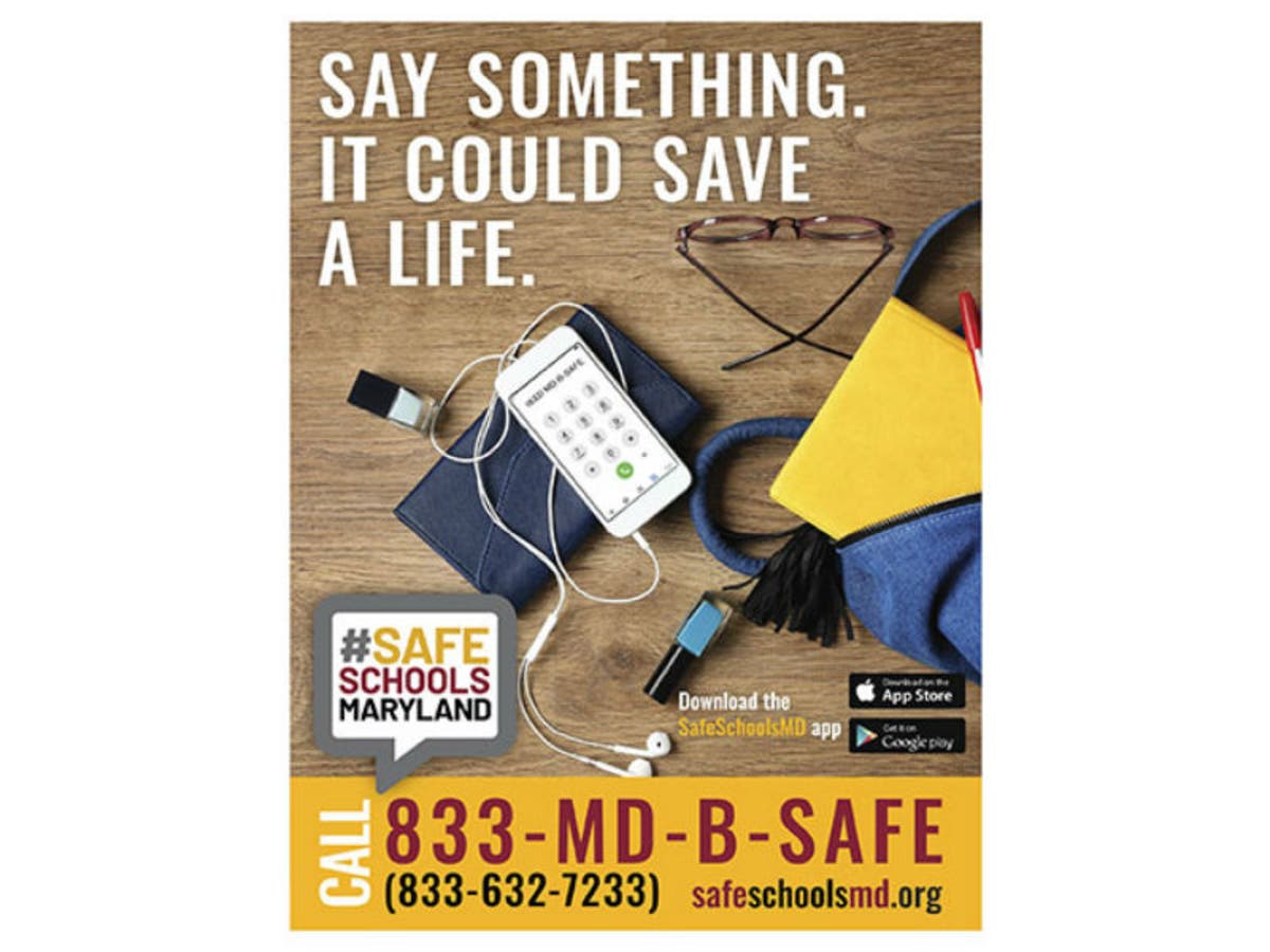 "If they see unsafe situations or behavior, including threats made in person or on social media, bullying or a friend who expresses the desire to hurt themselves or others, we need young Marylanders to say something and to do something without fear of retribution for coming forward," Hogan said.