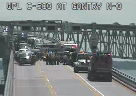 At 12:20 p.m., the Maryland Transportation Authority said delays were 5 miles in both directions. By 1:25 p.m., all lanes of the bridge were open.