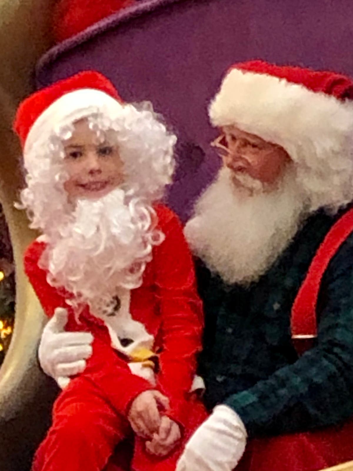 Young Santa Brayden Staron of Abingdon visits with the elder Santa, shared by Mary Staron.