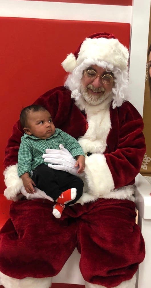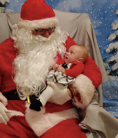 Kelly Ward made us smile with this photo of Reece, age 2 1/2 months, who seems fairly unsure of the guy with whiskers holding him. The picture was taken Dec. 16 at the Kohl's store in the Festival shopping center in Bel Air.