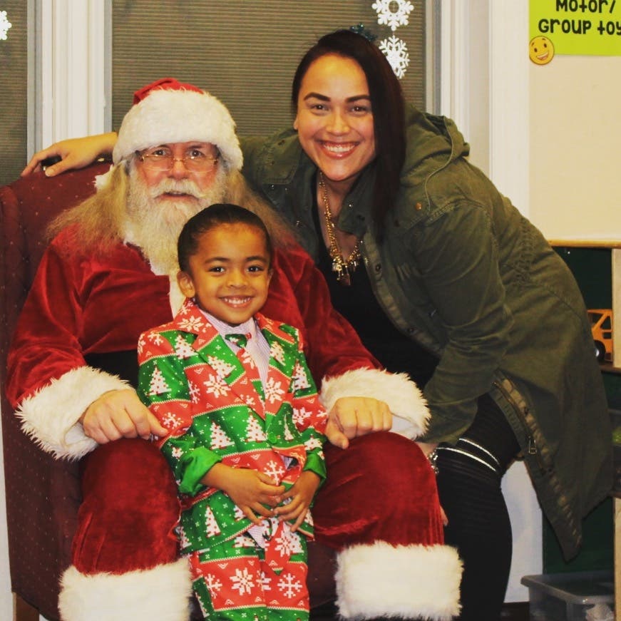 A few parents joined the fun, including Melissa Lawson of Ellicott City, when she took her son, Knox, age 4, to see Santa Claus. The phot was taken Dec. 15 during a holiday party at The Wishing Well Learning Center.