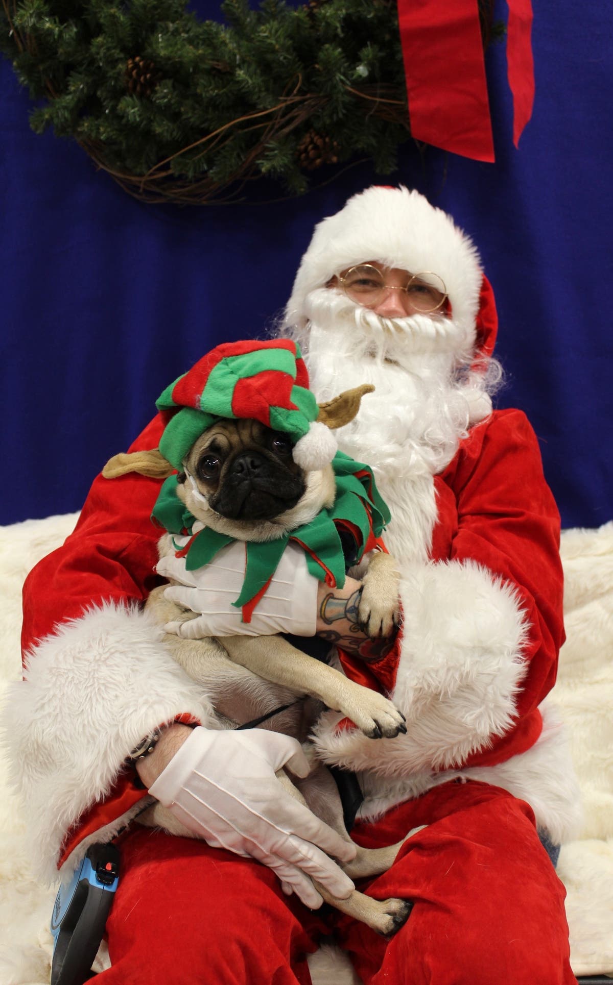 Brittani Carolan's adorable pug, Sebastian, snuggles with Santa at the Petsmart in Timonium.