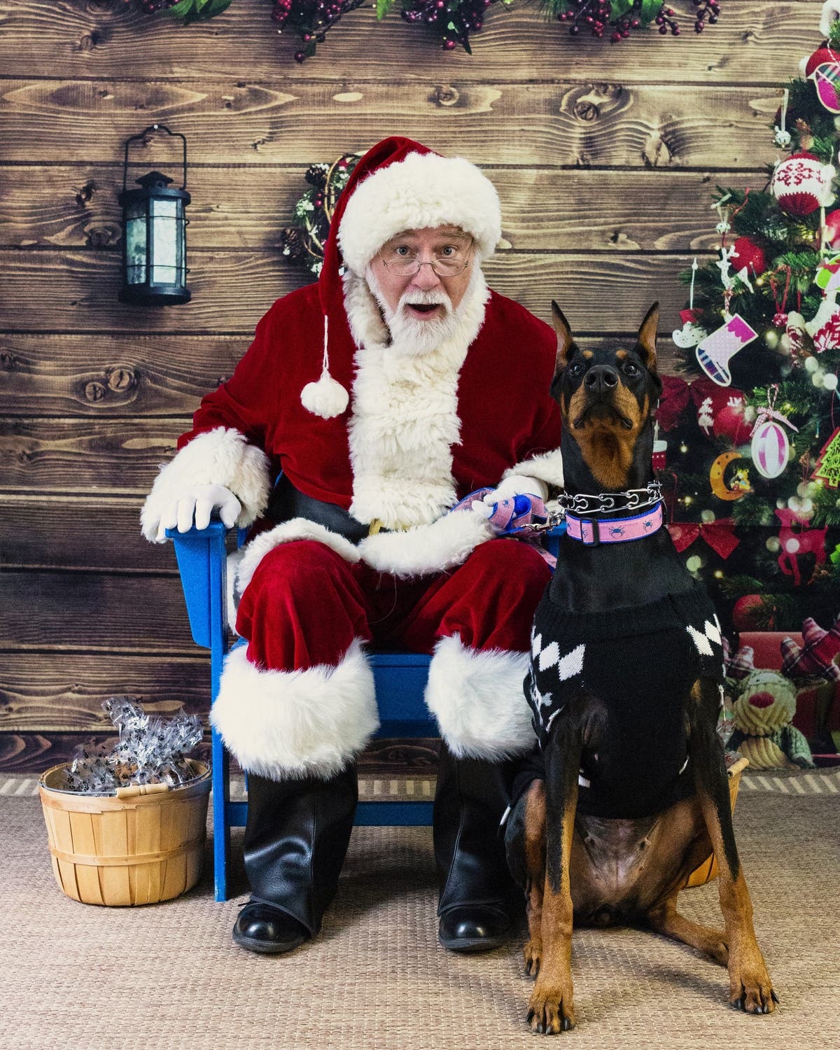 Macy, a Doberman, age 2, reportedly asked for lots of treats Dec. 9 when meeting with Santa at Canine Fitness Center in Crownsville, says owner Lauren Jones of Pasadena.