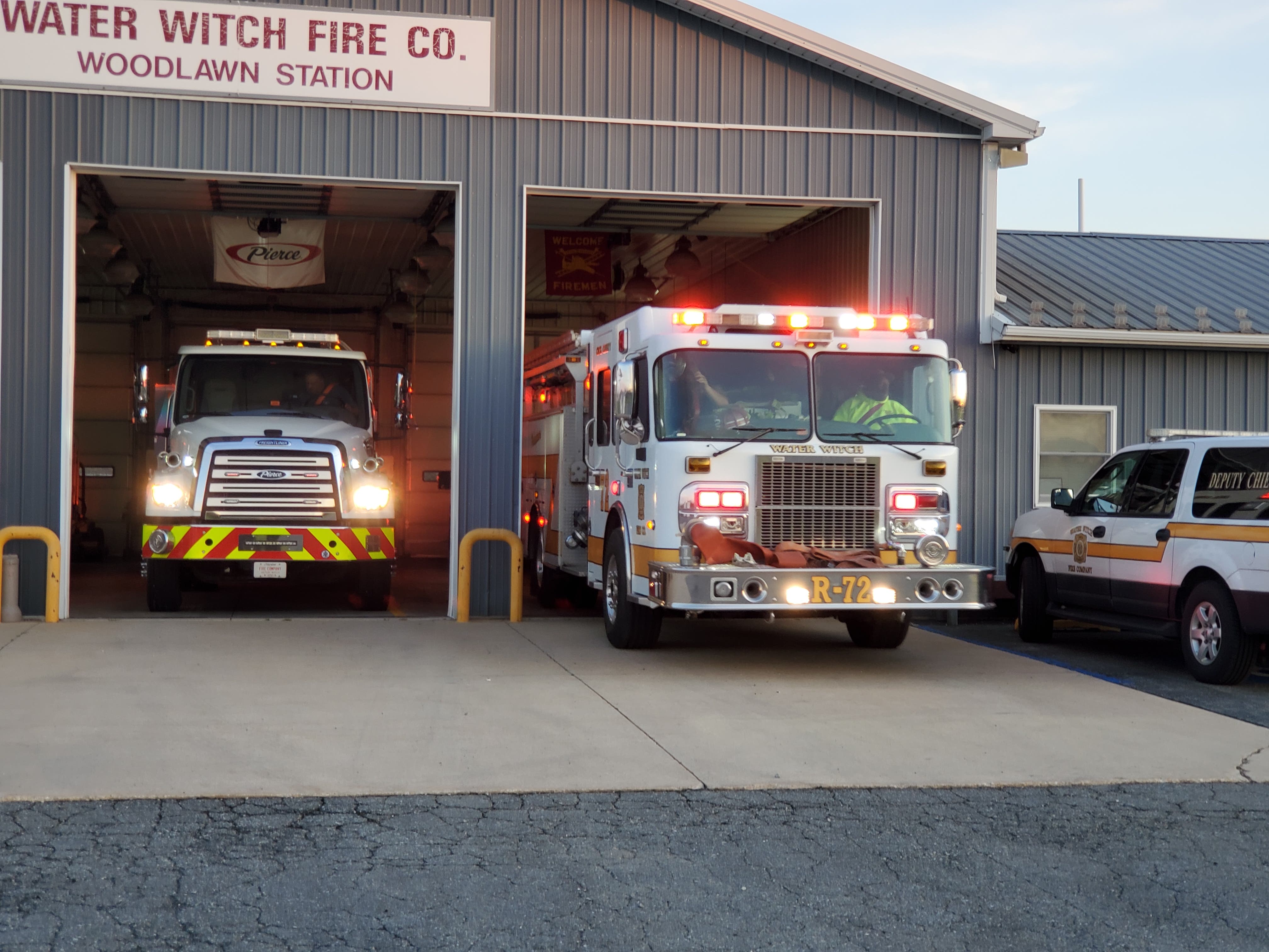 William Corbin took the next picture of Water Witch Fire Company Station 72 in Cecil County. The photo shows Rescue Engine 72 (right) responding and Tanker 72 (left) preparing to respond to a call on Monday, April 18.