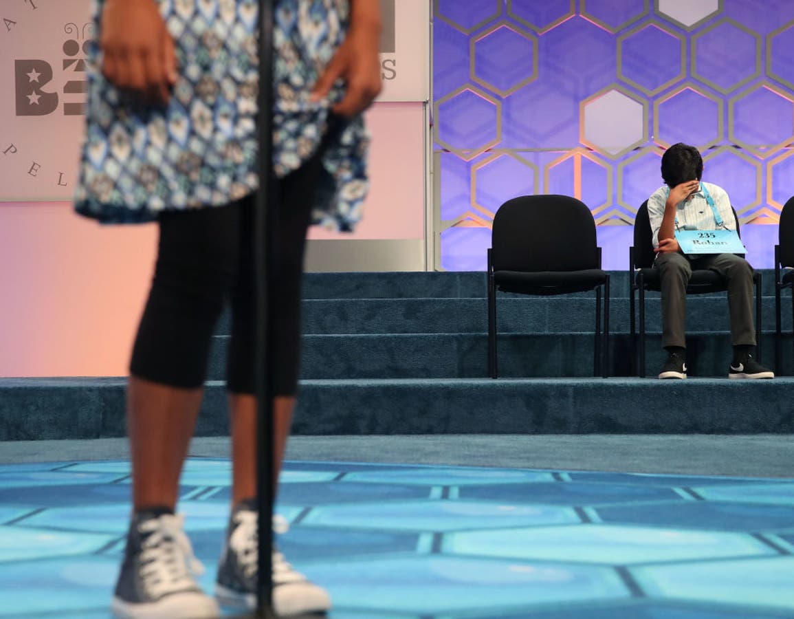 PHOTO: Rohan Rajeev, (R) waits to hear if 12 year old Ananya Vinay of Fresno, CA. spell her word 'marocain' correclty to win the 2017 Scripps National Spelling Bee, at Gaylord National Resort & Convention Center June 1, 2017 in National Harbor, Maryland. (Photo by Mark Wilson/Getty Images)