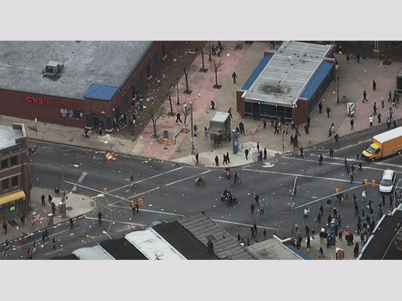 »Screenshot from WUSA TV of violence on the street of Baltimore