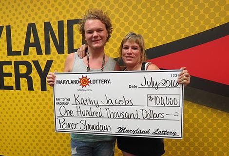 GLEN BURNIE, MD — Kathy Jacobs of Glen Burnie learned the fine art of playing poker as a child, betting with pennies and practicing with her dad. Decades later, the mother of four is still winning at poker but now she wins playing poker-themed scratch-offs sold by the Maryland Lottery.