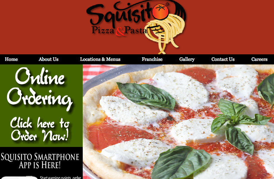 »Screenshot of Squisito Pizza’s website