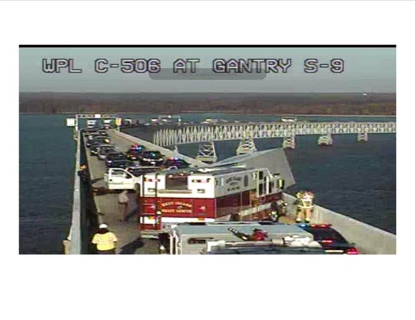 At 11 a.m. the Maryland Transportation Authority tweeted that all eastbound lanes are open on the span. Inspectors found the bridge to be safe for traffic. Two-way remains on the westbound span until traffic clears.