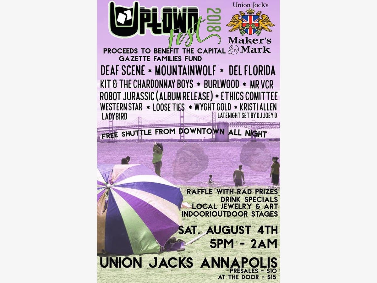 Uptown Fest 2018 music show on Aug. 4 at Union Jack's in Annapolis will benefit the Capital Gazette Families Fund.