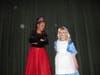While Sarah’s smile lit up the stage, she turned out to be just one of three delightful and talented “Alices” featured in the show. The other two, eighth grader Sarah Hodgson (Tall Alice), and third grader Katie Cavin (Small Alice) appeared in Wonderland each time Alice ate a magic cookie to change sizes so that she could keep up with Ryan Fisher, who played the sure-voiced yet time-challenged White Rabbit.