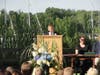 A parent picked up the kids and brought them over in her car so they could walk into the outdoor ceremony—just a few minutes behind schedule.