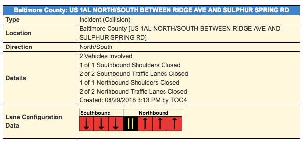 HALETHORPE, MD — A stretch of US 1/Washington Boulevard is shut down in Halethorpe Wednesday afternoon due to a crash. The collision involved two vehicles, officials reported.