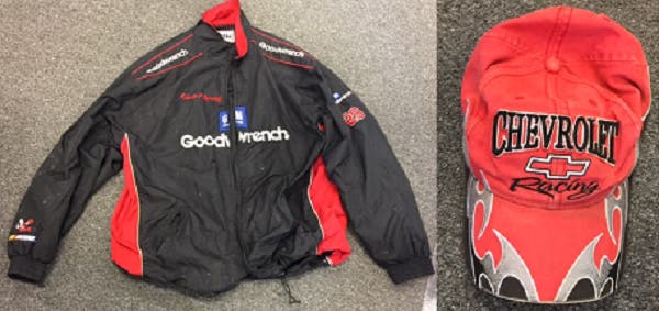 The suspect was described as a man approximately 45 to 60 years old with long, stringy brown hair. At the time of the robbery, he was wearing a distinctive red and black Nascar jacket and racing hat. Police said the items were found discarded in a storm drainage ditch nearby.