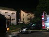 Pictured, the scene of the fire at 10:30 p.m. on Sunday, when part of Ashbourne Road remained blocked by fire vehicles in the area. Photos by Elizabeth Janney.