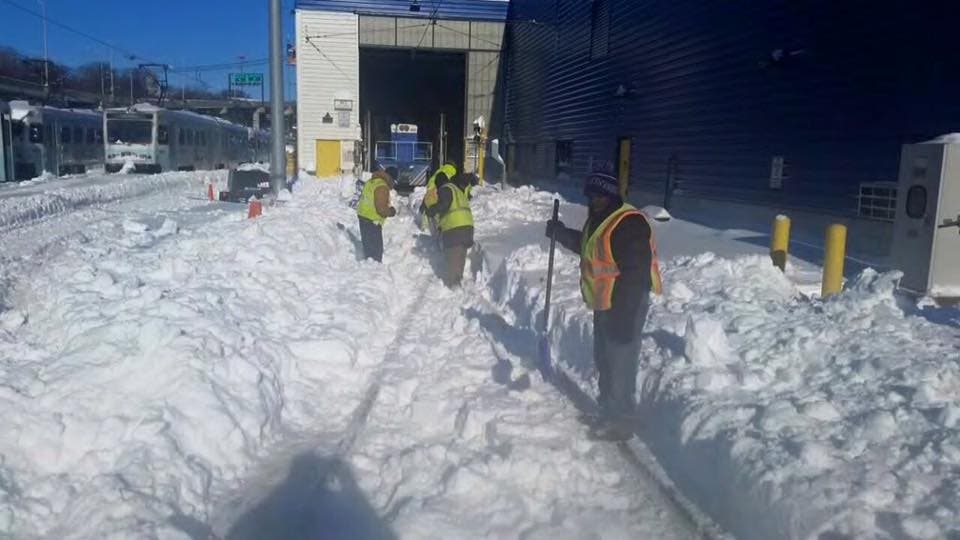 Maintenance crews are working to remove snow and restore service on the tracks.