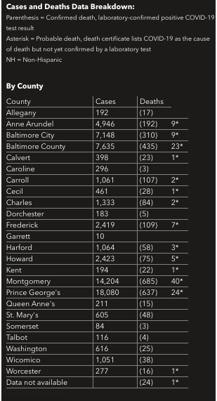 Nearly half of the state's coronavirus cases are in Prince George's and Montgomery counties alone. They account for 49.66 percent of the total, while Baltimore County and Baltimore City contain 22.74 percent of the coronavirus cases in Maryland.