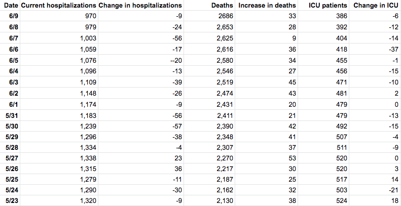 Here is a look at Maryland's coronavirus numbers as of Tuesday, June 9: