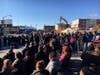 The former Madison Park North complex at 738 West North Avenue — where Hogan, Pugh and other officials held a Project C.O.R.E. press conference Friday next to a bulldozer — was first building to go.