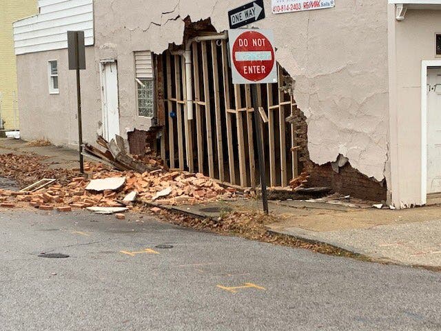 The damaged structure was a row house for sale, according to The Baltimore Sun.