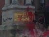 A statue in Baltimore has been vandalized, painted red and defaced with the words "Racist Anthem."