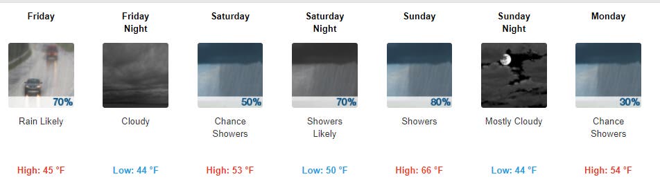 The sun is going on hiatus until Monday, with rain and clouds in the forecast every day through the weekend.