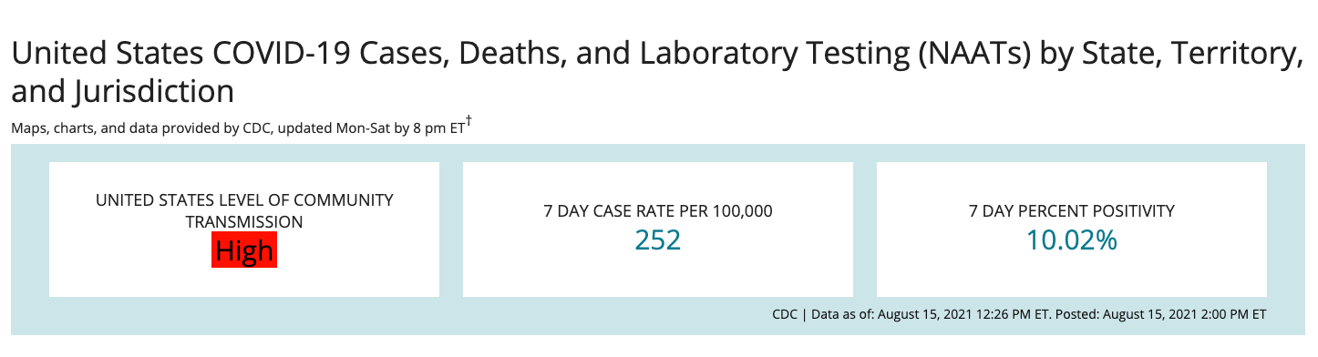 The latest CDC statistics cover the Aug. 7 to Aug. 13 period for case rates and Aug. 4 to Aug. 11 for positivity rate in Maryland.