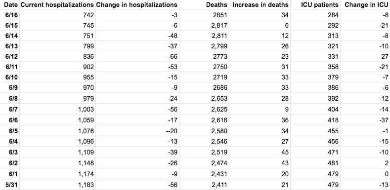 That said, the number of acute care patients overall has been trending down; a week ago, state health officials were reporting there were 587 patients with the virus in acute care.