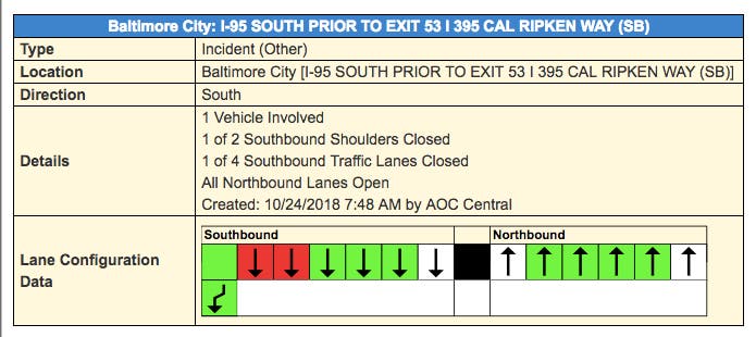 BALTIMORE, MD โ A medical emergency on Interstate 95 south slowed traffic Wednesday morning near Baltimore, according to the Maryland Transportation Authority. After 8:45 a.m., authorities reported the incident had cleared; all lanes were open.