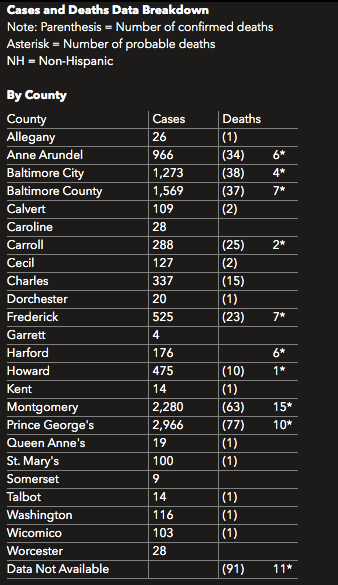 Maryland Coronavirus: 425 Deaths; 11,572 Confirmed Cases