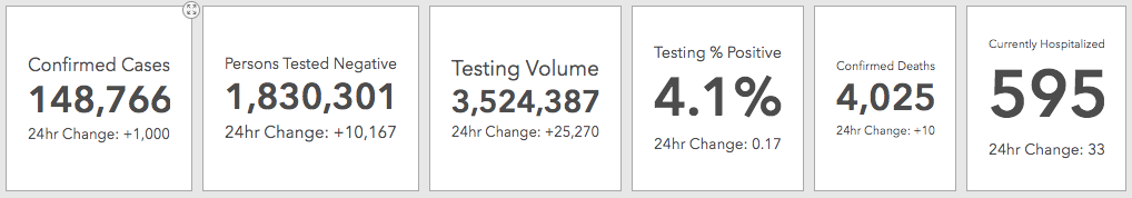 As of Wednesday, the state has reported 4,025 deaths; 1.83 million negative tests; and released 8,235 coronavirus patients from isolation due to the coronavirus.
