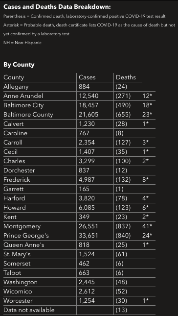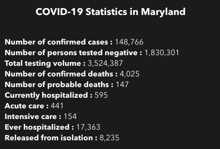 In the past day, officials said 1,000 new cases of the coronavirus were confirmed, bringing the total number of people infected in Maryland to 148,766. The last time Maryland had more than 1,000 cases reported in a day was Aug. 1.