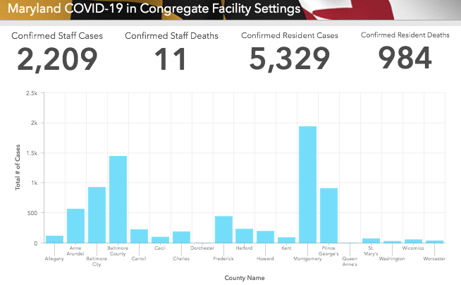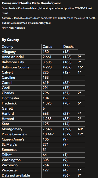 Table by Patch. Data courtesy of Maryland Department of Health.