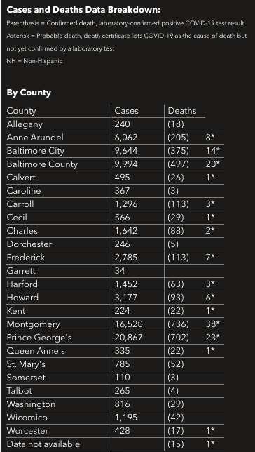 Maryland Coronavirus Cases By JurisdictionCourtesy of Maryland Department of Health.
