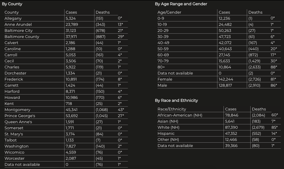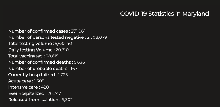 Here is a look at Maryland's coronavirus numbers as of Tuesday, Dec. 29: