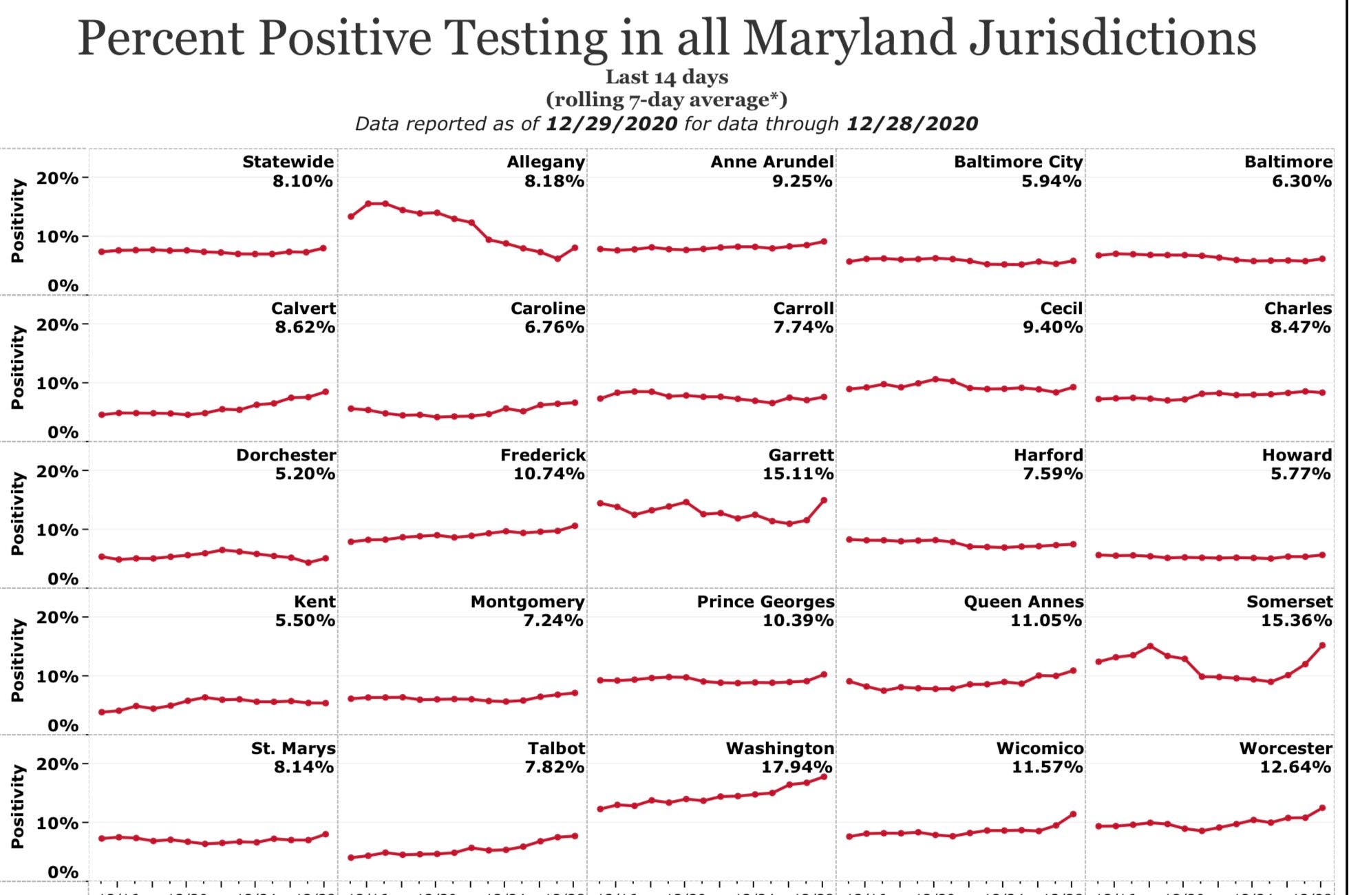 Maryland's highest positivity rate is in Washington County, at 17.94 percent as of Dec. 28.