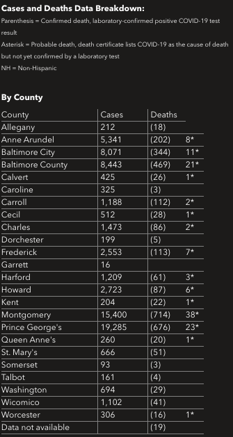 Maryland Coronavirus Cases By Jurisdiction![]()