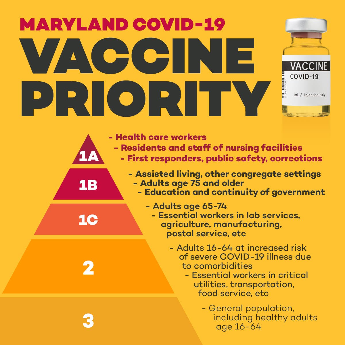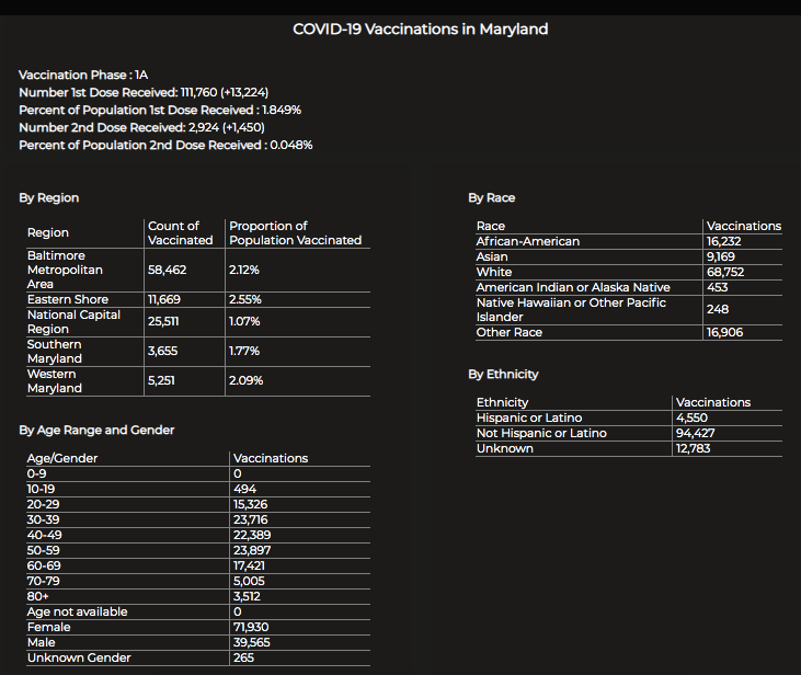 Maryland is vaccinating residents in phases, starting with health care workers, nursing home residents, nursing home staff and first responders.