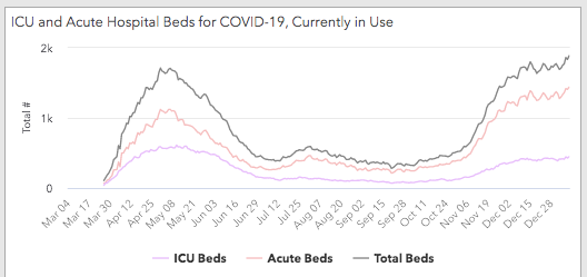Hospitalizations have seen an uptick since Halloween, with spikes after Thanksgiving and Christmas.