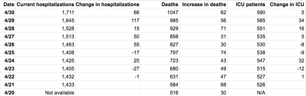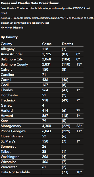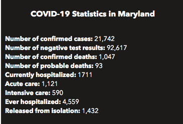 Here is a look at Maryland's coronavirus numbers as of Thursday, April 30: