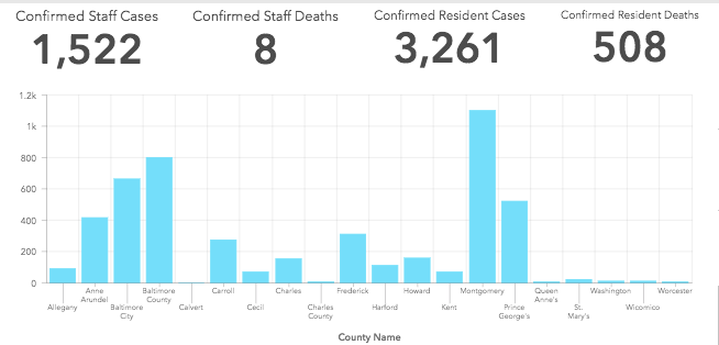 Residents and staff at nursing homes and congregate living facilities account for nearly 22 percent of Maryland's coronavirus cases and more than 49 percent of its deaths, based on Thursday's data.