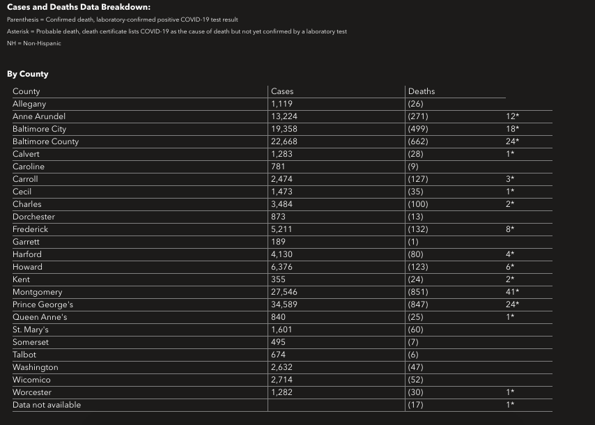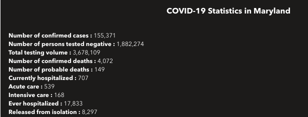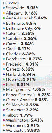 Here is a look at data on coronavirus in Maryland as of Monday, Nov. 9: