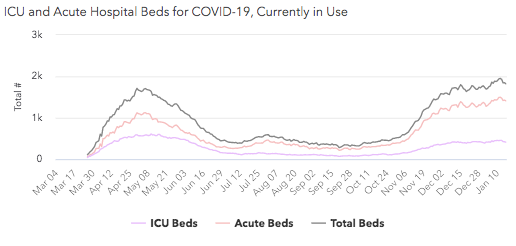 "Our hospital utilization rates remain very high, with ICUs at 91 percent capacity and our acute care units following closely behind at 90 percent capacity," Baltimore City Health Commissioner Letitia Dzirasa said Friday, Jan. 15.