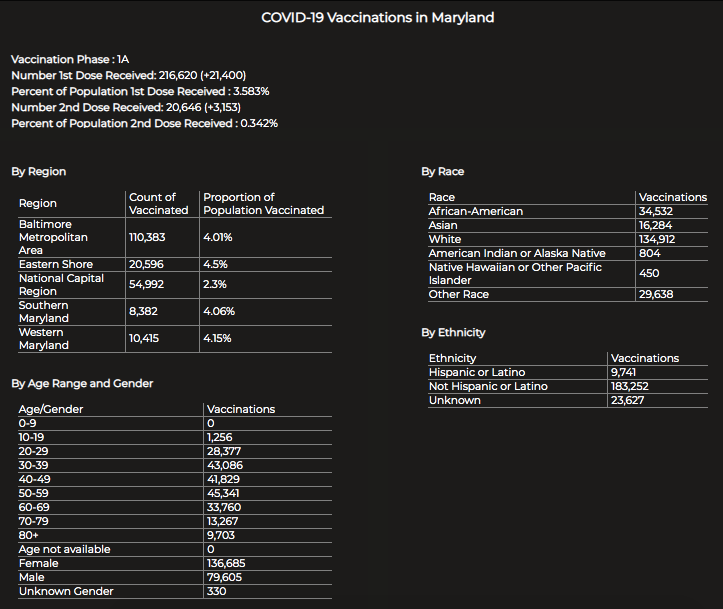 The state has launched an online portal where residents can find a list of vaccination sites in their area: covidvax.maryland.gov.
