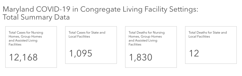 More than 12,100 people in Maryland's congregate living facilities have tested positive for the coronavirus, according to state health officials. More than 62 percent of Maryland's coronavirus deaths have occurred in congregate living facilities, state health data shows.