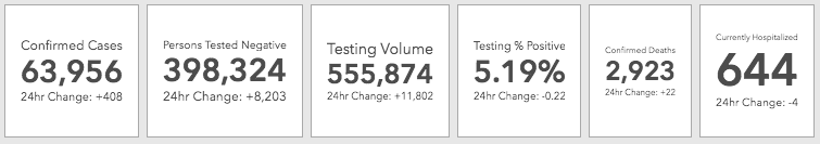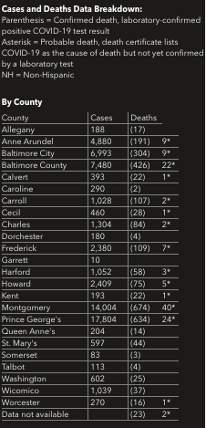 Authorities said 408 people tested positive for the coronavirus in the past day. There are 63,956 confirmed cases of the virus in Maryland, state health officials reported Saturday.