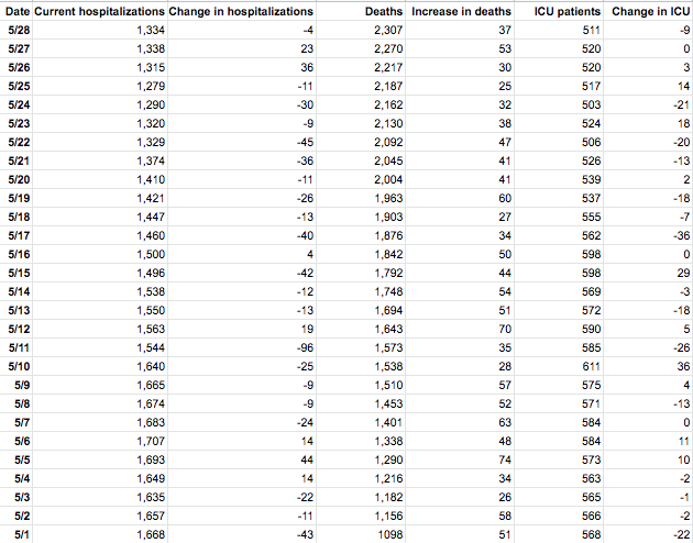 Here is a look at Maryland's coronavirus numbers as of Thursday, May 28: