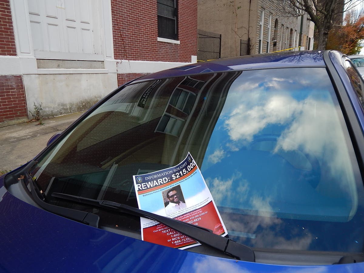 BALTIMORE, MD — Blocks surrounding the area where a Baltimore homicide detective was fatally shot have been cordoned off with crime scene tape for four days. Fliers advertising the $215,000 reward for information in the death of Detective Sean Suiter waved from windshields along streets nearby Sunday afternoon.